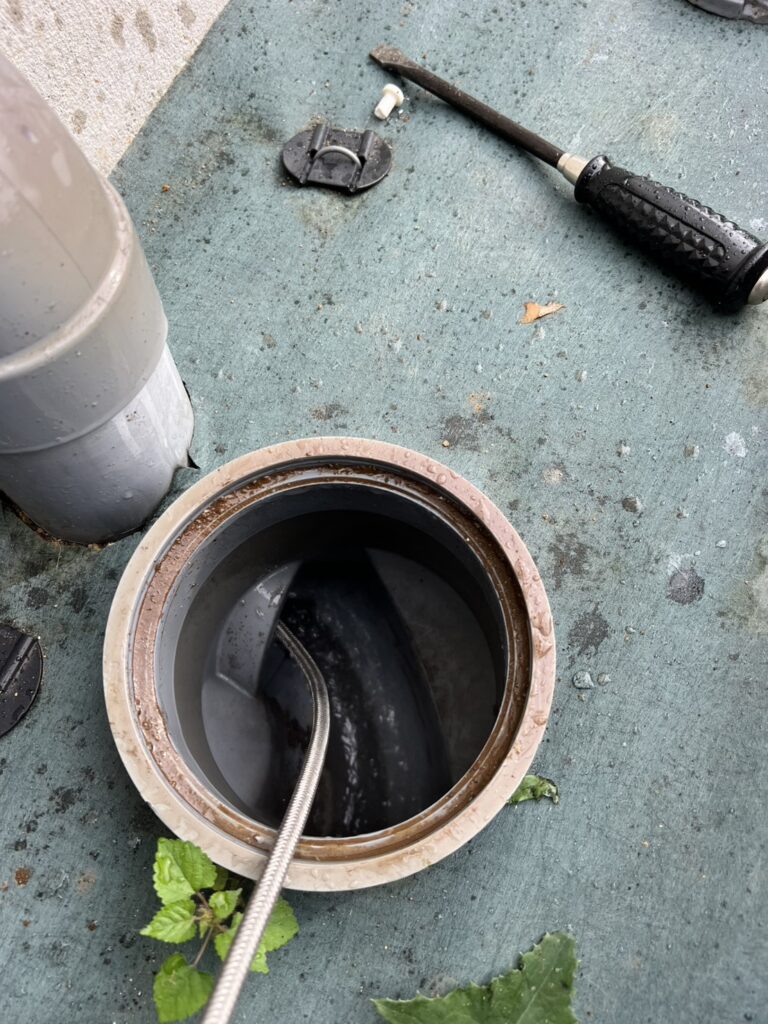 外の排水マスを開けてみると、見た目では大きな詰まりは確認できませんでしたが、